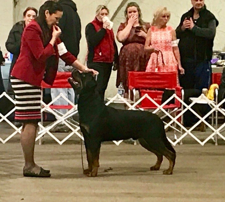 Accomplishments: Multi Youth Sieger, Multi V-1, AKC CHAMPION with three major wins: one 5 Point MAJOR WIN at Del Mar SPECIALTY 2018, Two 3 Point MAJOR WINS at 2018 Woofstock SPECIALTIES, International Junior Puppy Champion, National Junior Puppy Champion, Honor Junior Puppy Champion, 4 BOB puppy, BBBE puppy, and multi VP-rated, Certified in Tracking.
