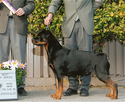 Titles: American and Canadian Champion, producer of merit, ranked #3 bitch and Top twenty overall for 2007 American Rottweiler Club Awards 2007